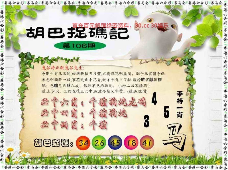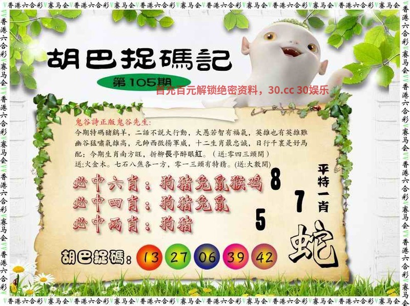 ╠解胡巴捉码记╣108期:今期生肖定南方,二三三四開本期,零二特靖有你看,取下作寶實求責十七年後中花期,十一十三合一數,特尾應取一三五,得道法高顯神通配:今期特馬找管家,董國舅內關受認。(送:四一二頭開)送;金土木。二下五上红波旺,大號特碼蓝緣到。(送:野獸開)